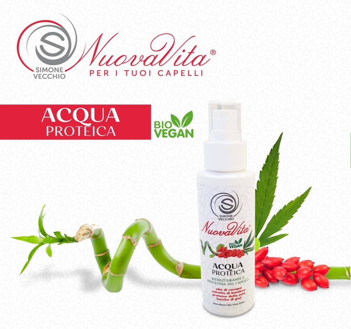 Spray nutriente che protegge i capelli dall’esposizione al calore durante lo styling a caldo o all'umidità, aiutando a prevenire danni alla struttura del capello. Rende i capelli più morbidi e facilmente pettinabili. Contiene estratto di Canapa, estratto di bamboo e bacche di goji che favoriscono la naturale produzione di cheratina, che dona ai capelli forza e lucentezza. Le Proteine della Seta sigillano la superficie del capello con uno stratto protettivo, idratandolo e proteggendolo.