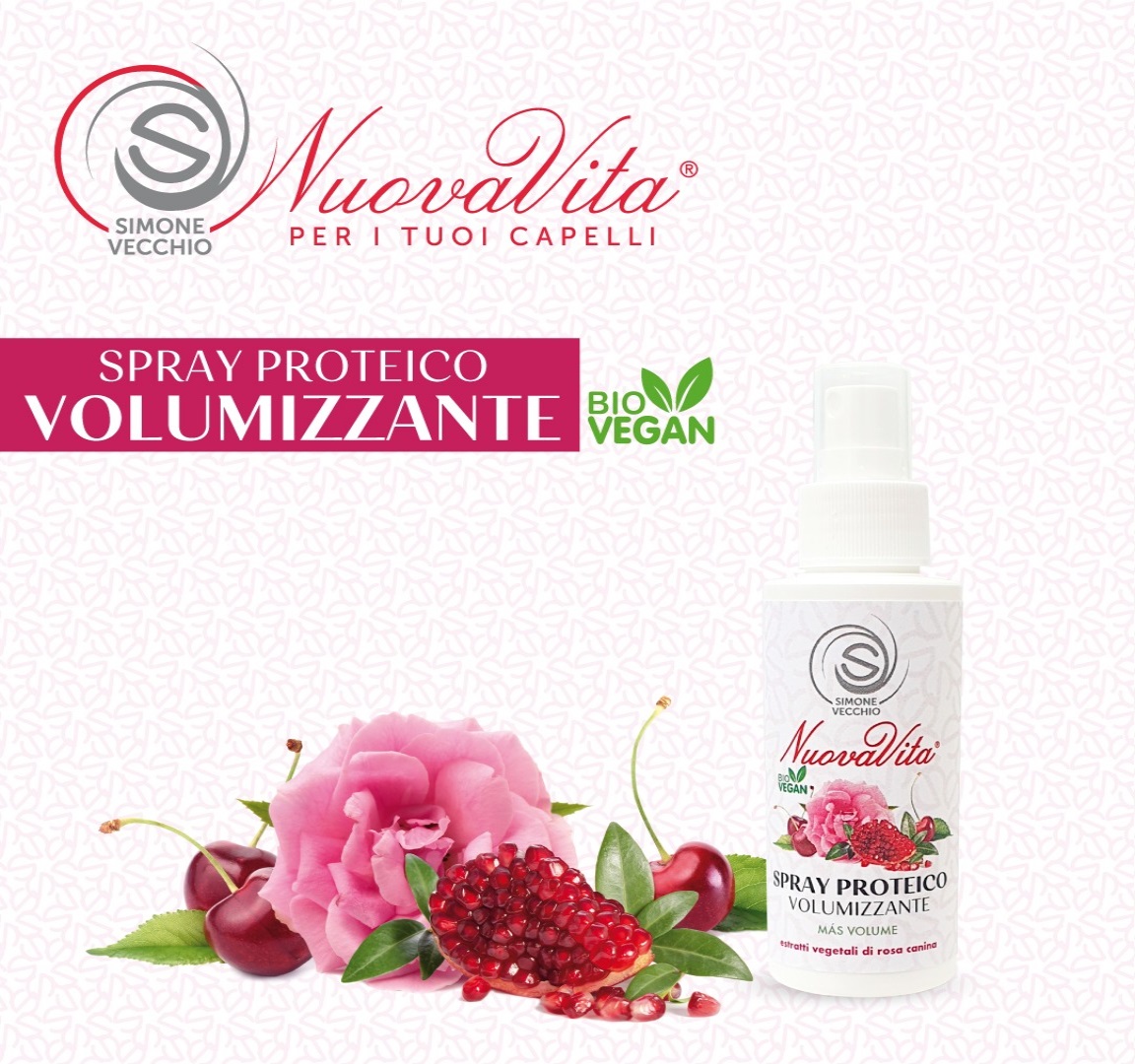 Spray volumizzante adatto per chi ha i capelli piatti e senza forma. Contiene estratti vegetali di rosa canina, lino, con aggiunta di attivi che stimolano le radici dei capelli donando un effetto più voluminoso. Il profumo è alla rosa.